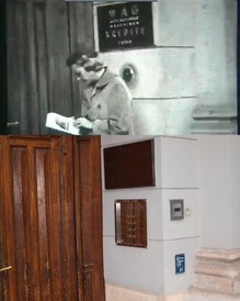 Telefonzelle in einer Allee (scheinbar Parkring Allee wie zu Beginn des Films): Die Hauptdarstellerin kommt der Kamera entgegen und betritt die Telefonzelle. Rechts von ihr ist wie am Anfang neben den Bäumen der fließende Straßenverkehr zu vernehmen. Sie nimmt den Hörer und will jemanden anrufen. Sie spricht wenige Momente und legt dann den Hörer zweimal auf (Bewegungs-/Schnittfehler), bevor sie die Telefonzelle wieder verlässt. Ein Mann im dunklen Anzug kommt der Kamera entgegen, die Straßenbahn fährt hinter der Telefonzelle vorbei. Es folgt eine Nahaufnahme der Dame in der Telefonzelle, mehrmaliger Perspektiven-/Einstellungswechsel. (4.08-5.26)
